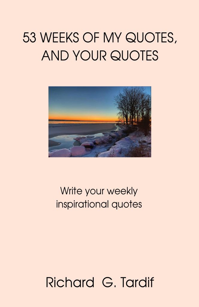 We love inspirational quotes. I wrote one a week. Join me in writing a weekly quote. When you write your quote, make a note on the page why you wrote your quote. You will return to the passage one day and understand why you reported it. Enjoy.